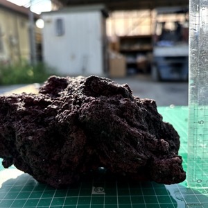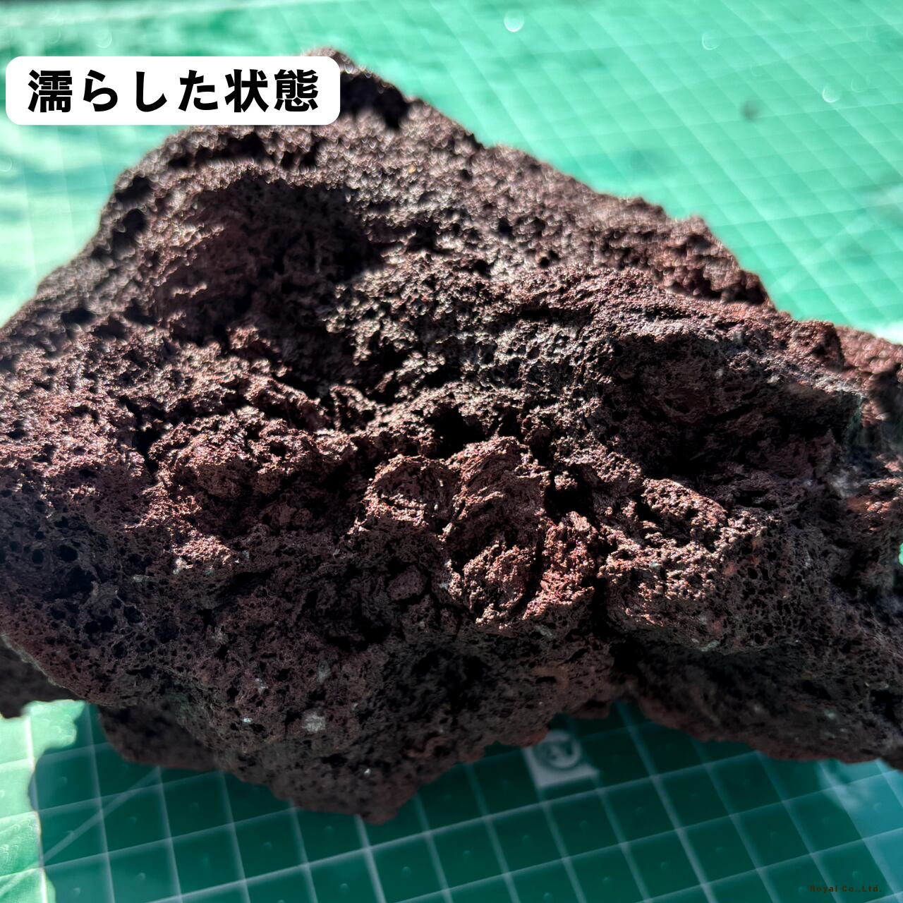 多孔質でざらざらとした質感。黒の溶岩石よりも凸凹があります。