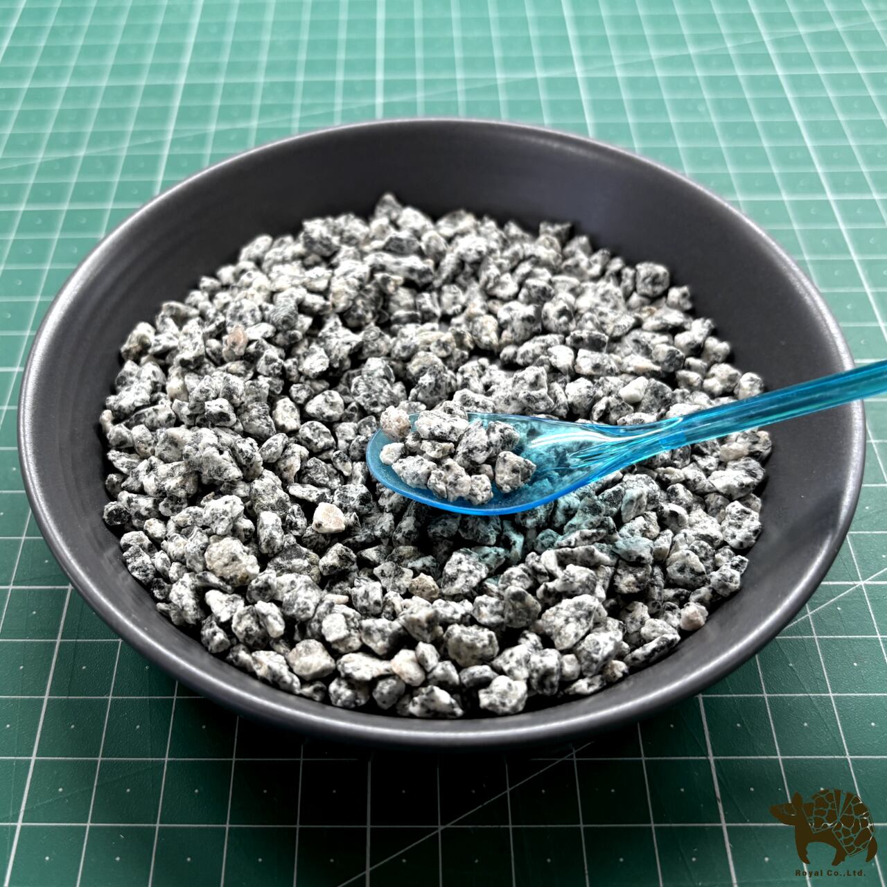 This is fine-grained granite gravel. When wet, the black portions become more prominent. When dry, it has a whitish color with black specks mixed in. It's a versatile fine-grained gravel suitable for various uses, such as creating a Japanese garden-style gravel bed in small worlds like terrariums or dioramas, or making a miniature kare-sansui (dry landscape garden). Being about 5mm in size, it's also easy to lay as an aquarium substrate.