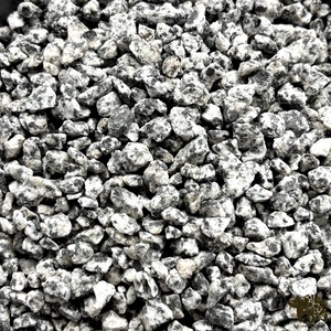 御影石の細かい小粒の砂利です。濡らすと黒の部分が目立ちます。乾いている状態は白っぽい中に黒いゴマが混じっているような色です。テラリウムやジオラマ、模型のような小さな世界でも日本庭園風に御影砂利を敷きたい、小さく枯山水を作りたいなど様々な場面で使い勝手のよい小粒な砂利です。5mm程度と細かいので水槽の底にも敷きやすいサイズ感だと思います。