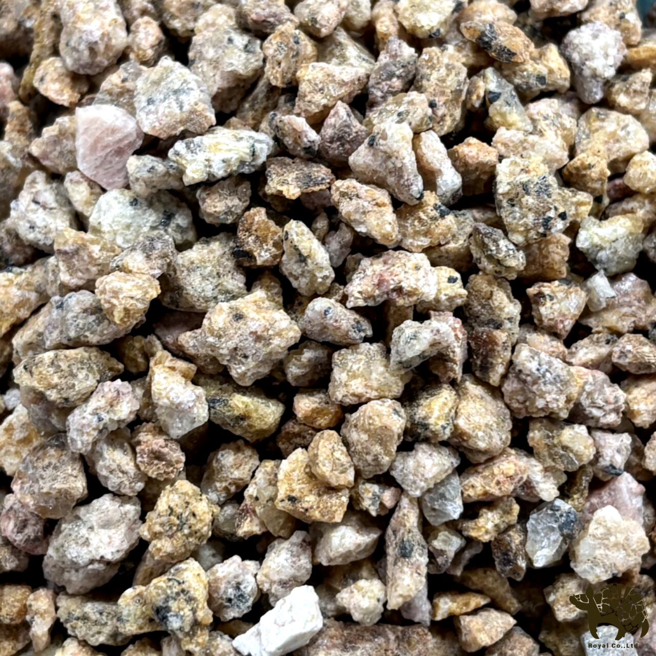 茶色、赤系の花崗岩の小粒な砂利です。花崗岩らしく黒ゴマはいっていて、色、形など1粒1粒に個性がある砂利です。3-6mmと小粒なので、テラリウムやジオラマ、模型などの小さい世界をつくる際や水槽の砂利としてなど使い勝手がよくおすすめです。